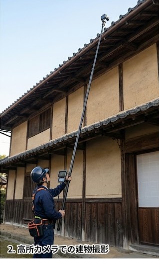 高所カメラ・ドローン等による写真撮影及び平面図(単線)や求積表が作成できます。